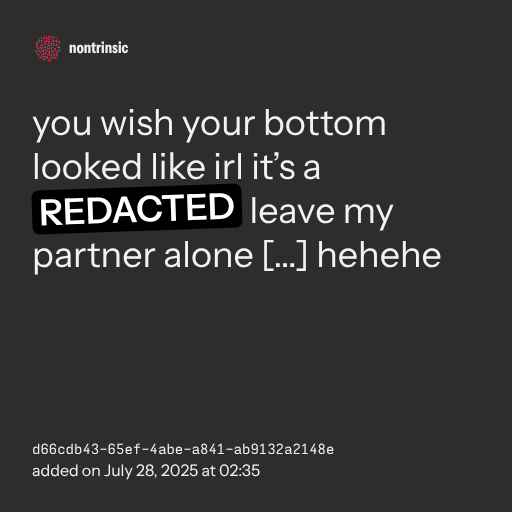 π€ shareyou wish your bottom looked like irl it’s a REDACTED leave my partner alone [β¦] hehehe