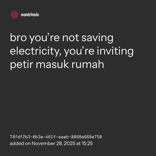 π€ sharebro you’re not saving electricity, you’re inviting petir masuk rumah