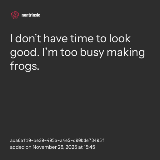 π€ shareI don’t have time to look good. I’m too busy making frogs.