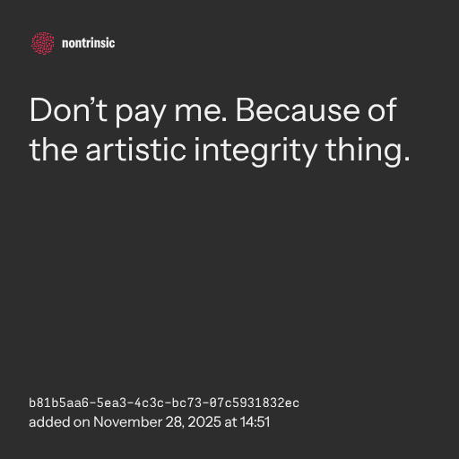 π€ shareDon’t pay me. Because of the artistic integrity thing.