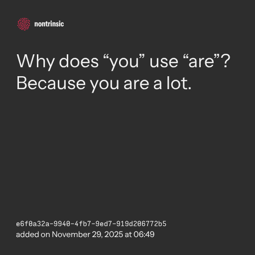 π€ shareWhy does “you” use “are”? Because you are a lot.