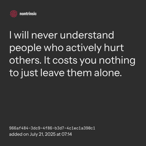 📤 shareI will never understand people who actively hurt others. It costs you nothing to just leave them alone.