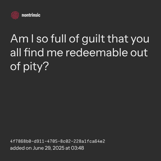 📤 shareAm I so full of guilt that you all find me redeemable out of pity?