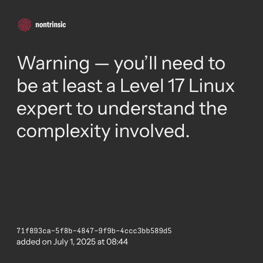 📤 shareWarning — you’ll need to be at least a Level 17 Linux expert to understand the complexity involved.