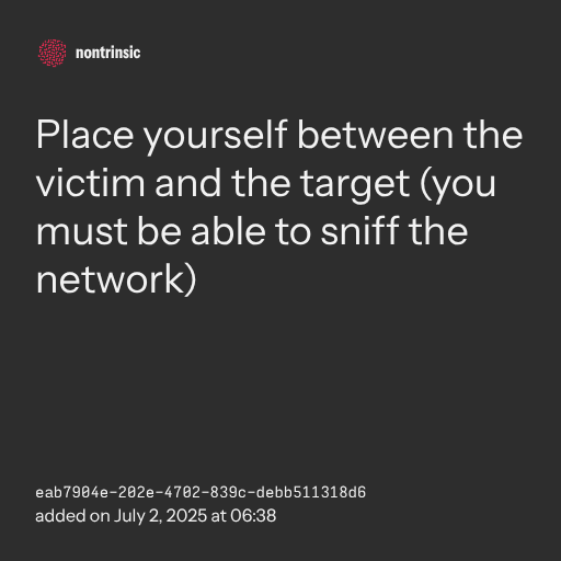 📤 sharePlace yourself between the victim and the target (you must be able to sniff the network)