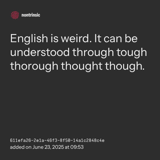 π€ shareEnglish is weird. It can be understood through tough thorough thought though.