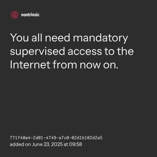 π€ shareYou all need mandatory supervised access to the Internet from now on.