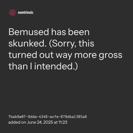 π€ shareBemused has been skunked. (Sorry, this turned out way more gross than I intended.)