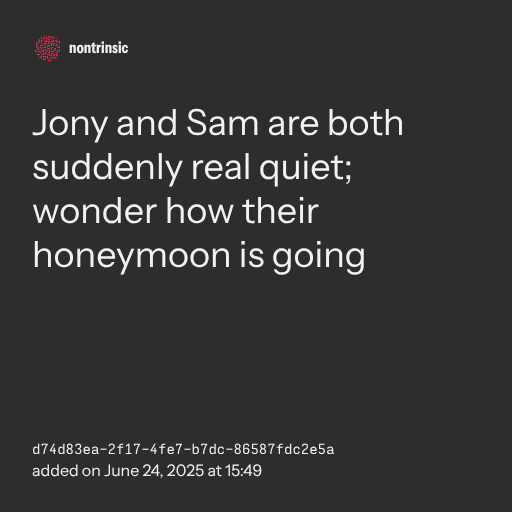 π€ shareJony and Sam are both suddenly real quiet; wonder how their honeymoon is going