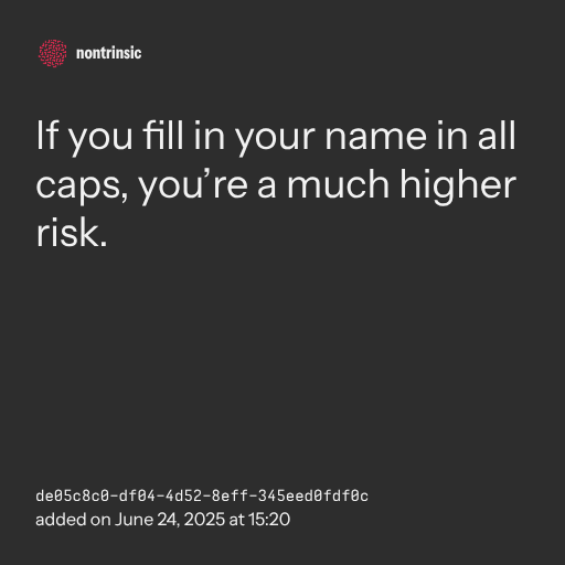 π€ shareIf you fill in your name in all caps, you’re a much higher risk.