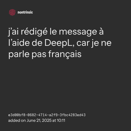 π€ sharej’ai rΓ©digΓ© le message Γ l’aide de DeepL, car je ne parle pas franΓ§ais