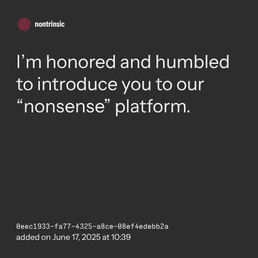 π€ shareI’m honored and humbled to introduce you to our “nonsense” platform.