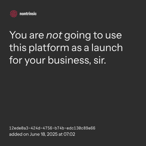 π€ shareYou are not going to use this platform as a launch for your business, sir.