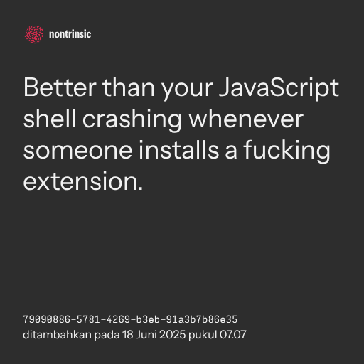 π€ shareBetter than your JavaScript shell crashing whenever someone installs a fucking extension.