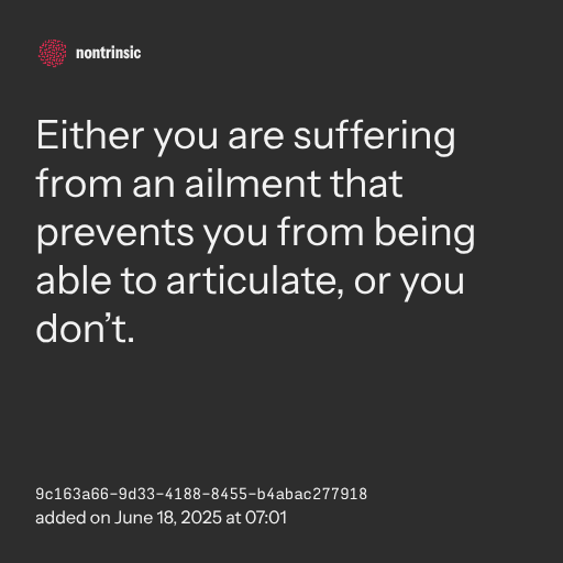 π€ shareEither you are suffering from an ailment that prevents you from being able to articulate, or you don’t.