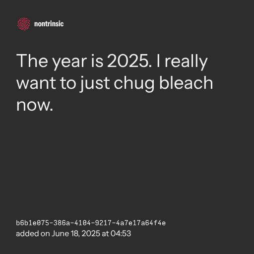 π€ shareThe year is 2025. I really want to just chug bleach now.