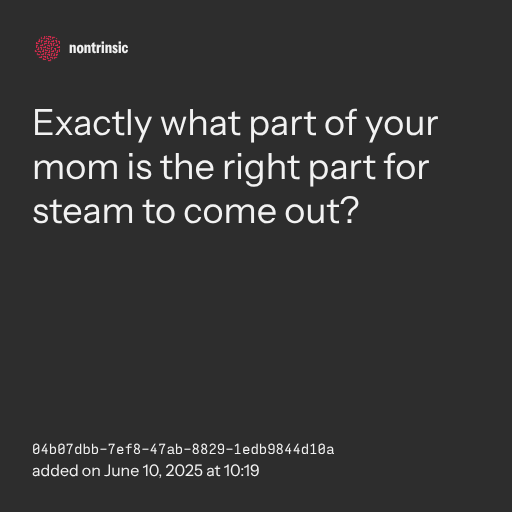 📤 shareExactly what part of your mom is the right part for steam to come out?