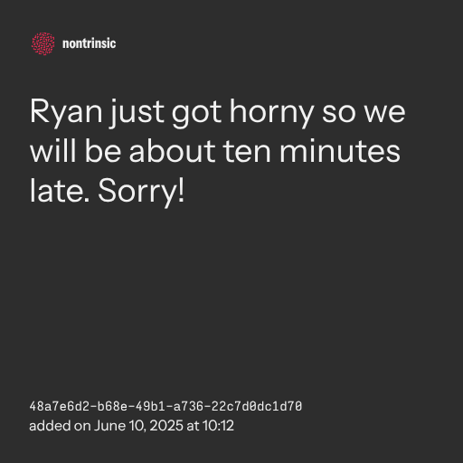📤 shareRyan just got horny so we will be about ten minutes late. Sorry!