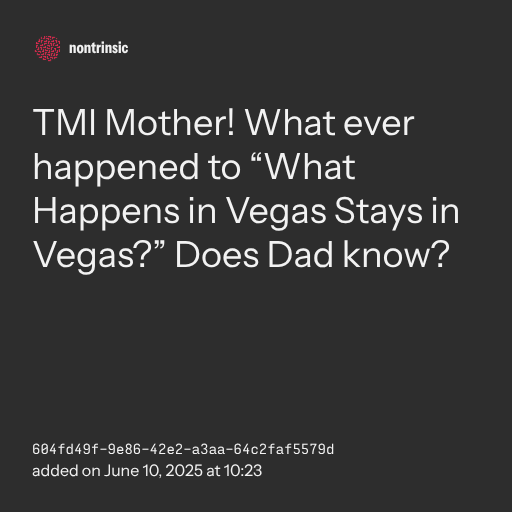 📤 shareTMI Mother! What ever happened to “What Happens in Vegas Stays in Vegas?” Does Dad know?