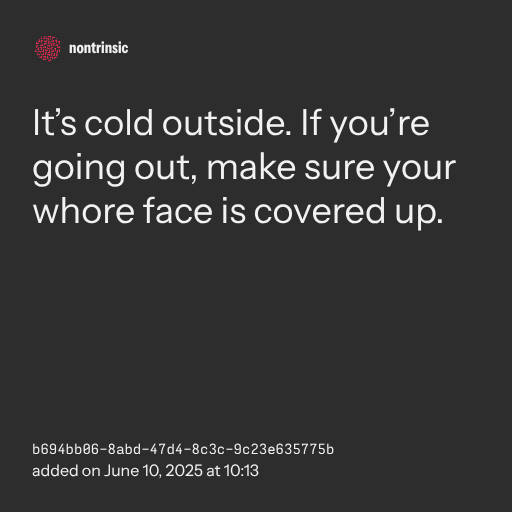📤 shareIt’s cold outside. If you’re going out, make sure your whore face is covered up.