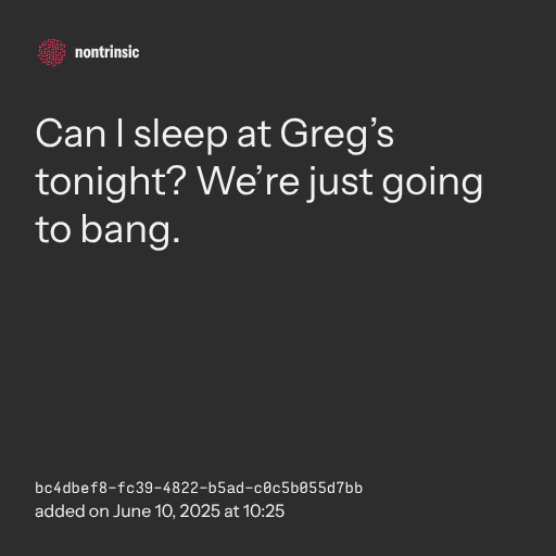 📤 shareCan I sleep at Greg’s tonight? We’re just going to bang.