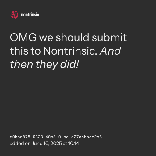 📤 shareOMG we should submit this to Nontrinsic. And then they did!