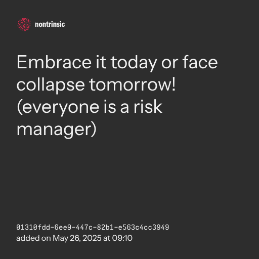 ๐ค shareEmbrace it today or face collapse tomorrow! (everyone is a risk manager)