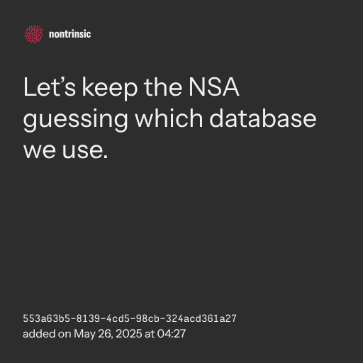 ๐ค shareLet’s keep the NSA guessing which database we use.
