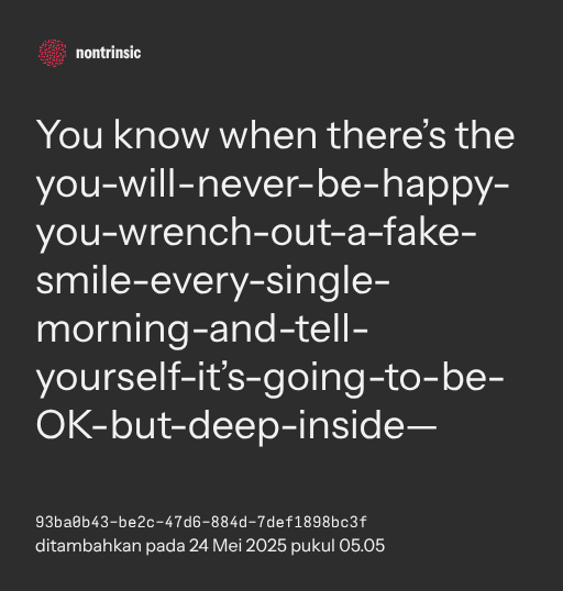 ๐ค shareYou know when there’s the you-will-never-be-happy-you-wrench-out-a-fake-smile-every-single-morning-and-tell-yourself-it’s-going-to-be-OK-but-deep-insideโ