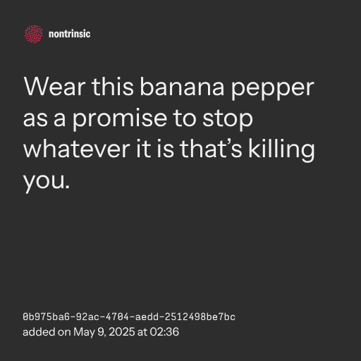📤 shareWear this banana pepper as a promise to stop whatever it is that’s killing you.