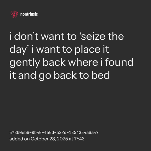 📤 sharei don’t want to ‘seize the day’ i want to place it gently back where i found it and go back to bed