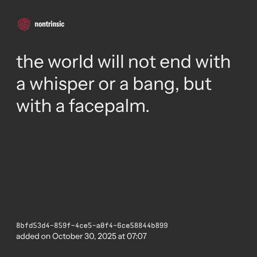📤 sharethe world will not end with a whisper or a bang, but with a facepalm.