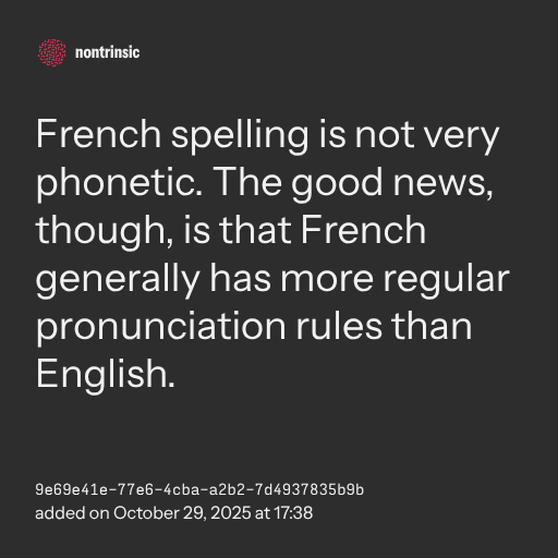 📤 shareFrench spelling is not very phonetic. The good news, though, is that French generally has more regular pronunciation rules than English.
