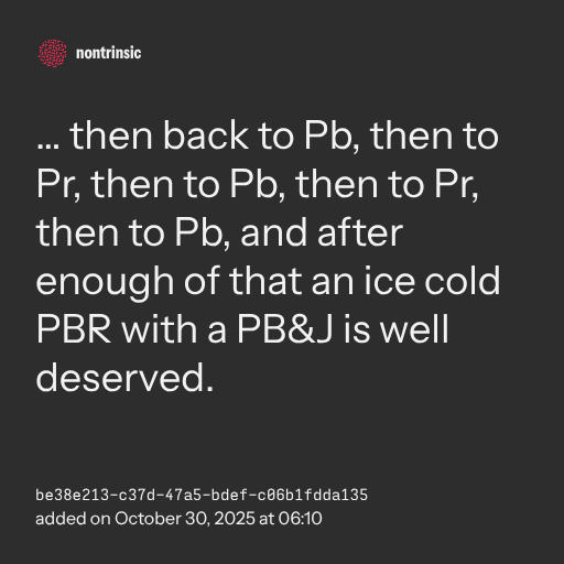 📤 share… then back to Pb, then to Pr, then to Pb, then to Pr, then to Pb, and after enough of that an ice cold PBR with a PB&J is well deserved.