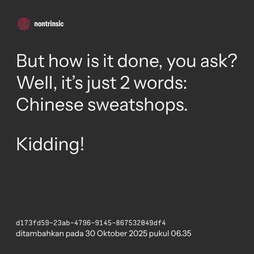 📤 shareBut how is it done, you ask? Well, it’s just 2 words: Chinese sweatshops.