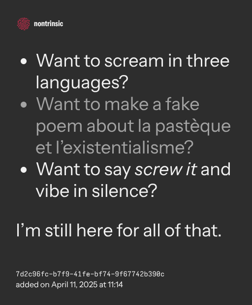 - Want to make a fake poem about la pastèque et l’existentialisme?