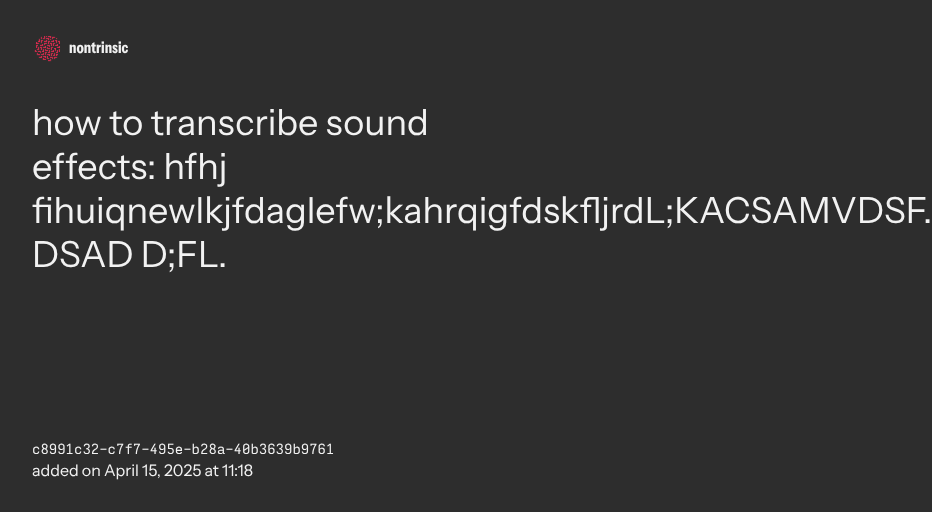 📤 sharehow to transcribe sound effects: hfhj fihuiqnewlkjfdaglefw;kahrqigfdskfljrdL;KACSAMVDSF. DSAD D;FL.