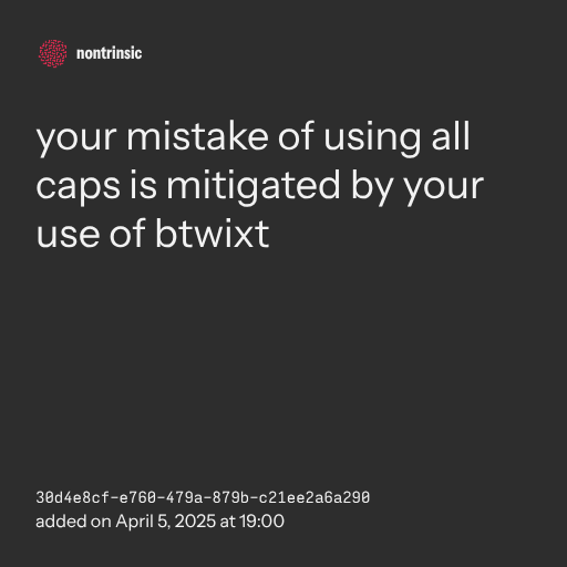 📤 shareyour mistake of using all caps is mitigated by your use of btwixt