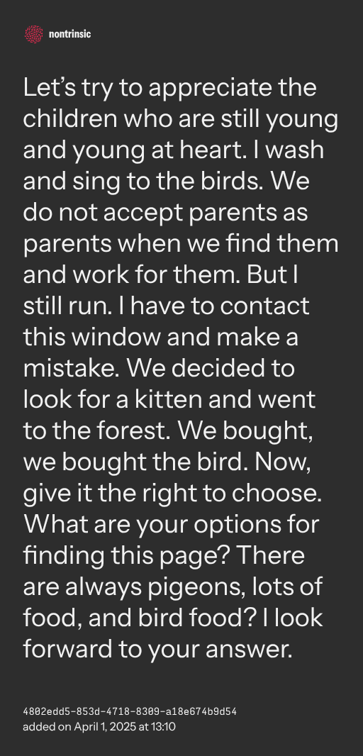 📤 shareLet’s try to appreciate the children who are still young and young at heart. I wash and sing to the birds. We do not accept parents as parents when we find them and work for them. But I still run. I have to contact this window and make a mistake. We decided to look for a kitten and went to the forest. We bought, we bought the bird. Now, give it the right to choose. What are your options for finding this page? There are always pigeons, lots of food, and bird food? I look forward to your answer.