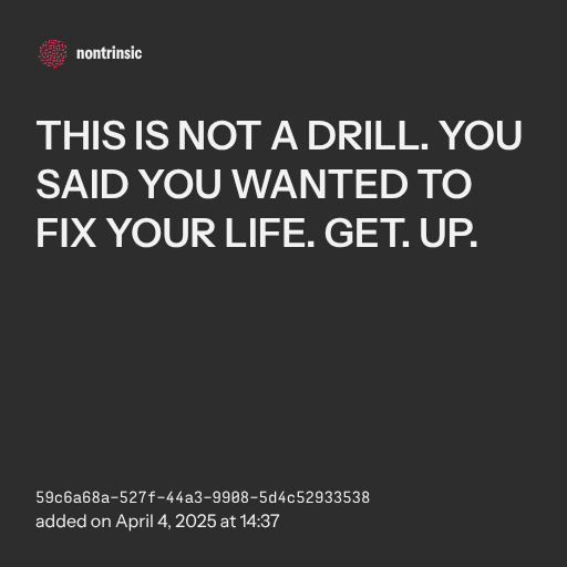 📤 shareTHIS IS NOT A DRILL. YOU SAID YOU WANTED TO FIX YOUR LIFE. GET. UP.