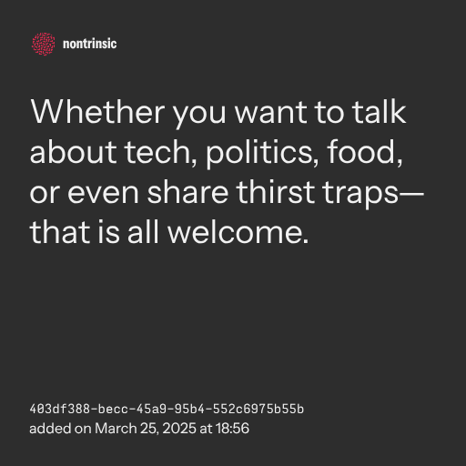 📤 shareWhether you want to talk about tech, politics, food, or even share thirst traps—that is all welcome.