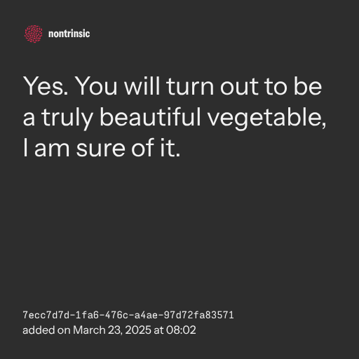 📤 shareYes. You will turn out to be a truly beautiful vegetable, I am sure of it.