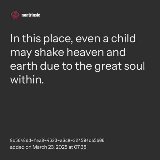 📤 shareIn this place, even a child may shake heaven and earth due to the great soul within.