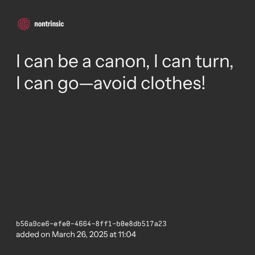 📤 shareI can be a canon, I can turn, I can go—avoid clothes!