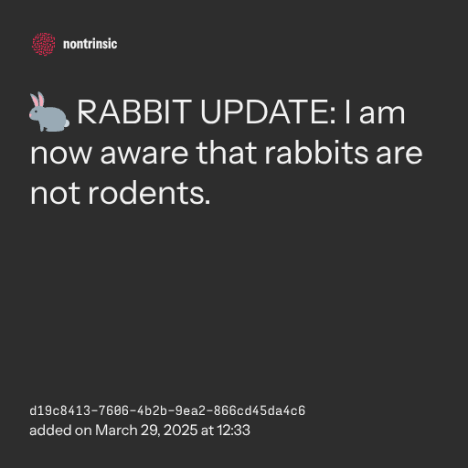 🐇 RABBIT UPDATE: I am now aware that rabbits are not rodents.