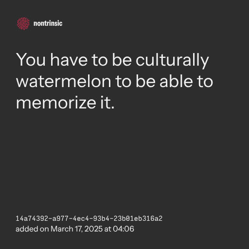 📤 shareYou have to be culturally watermelon to be able to memorize it.
