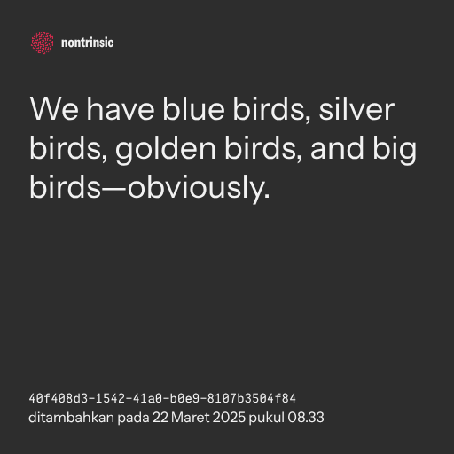 📤 shareWe have blue birds, silver birds, golden birds, and big birds—obviously.