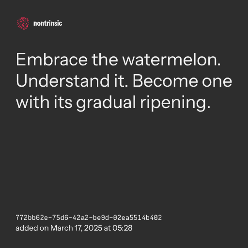 📤 shareEmbrace the watermelon. Understand it. Become one with its gradual ripening.