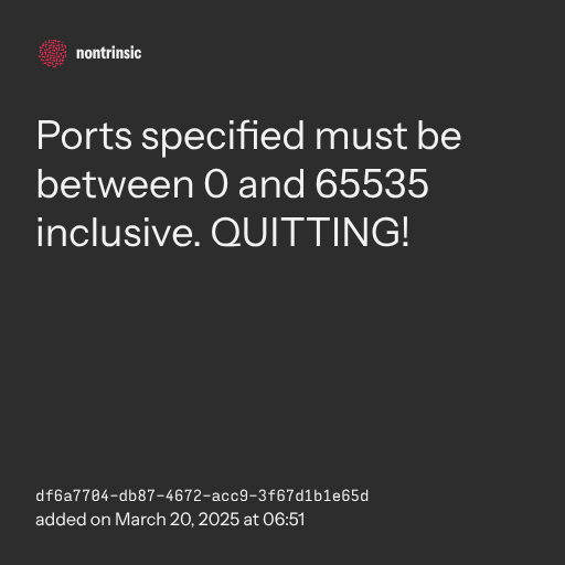 📤 sharePorts specified must be between 0 and 65535 inclusive. QUITTING!