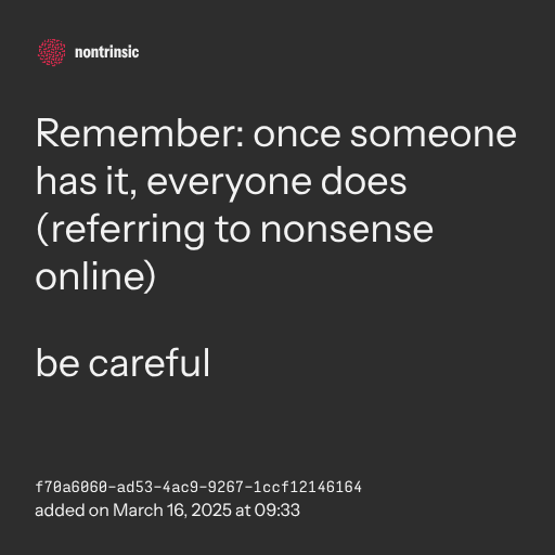 📤 shareRemember: once someone has it, everyone does (referring to nonsense online)
